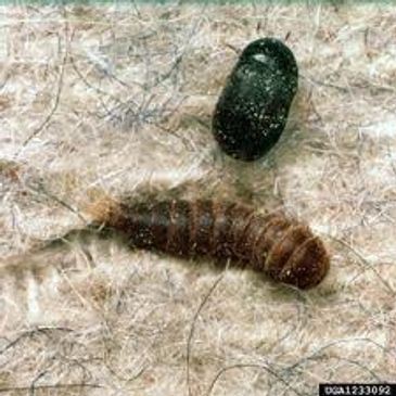 Carpet beetles are small, oval-shaped insects that can cause significant damage to household items. While adult carpet beetles feed on plant pollen, their larvae are the primary culprits behind infestations. These larvae feed on a variety of animal-based materials, including wool, silk, fur, feathers, leather, and even pet hair. They are commonly found in carpets, upholstered furniture, clothing, and stored food products. Larval feeding often occurs in dark, undisturbed areas such as closets, attics, and storage boxes.