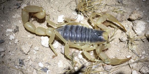 There are also other smaller, less venomous scorpions in the area, such as the striped tail scorpion (Vaejovis spinigerus).